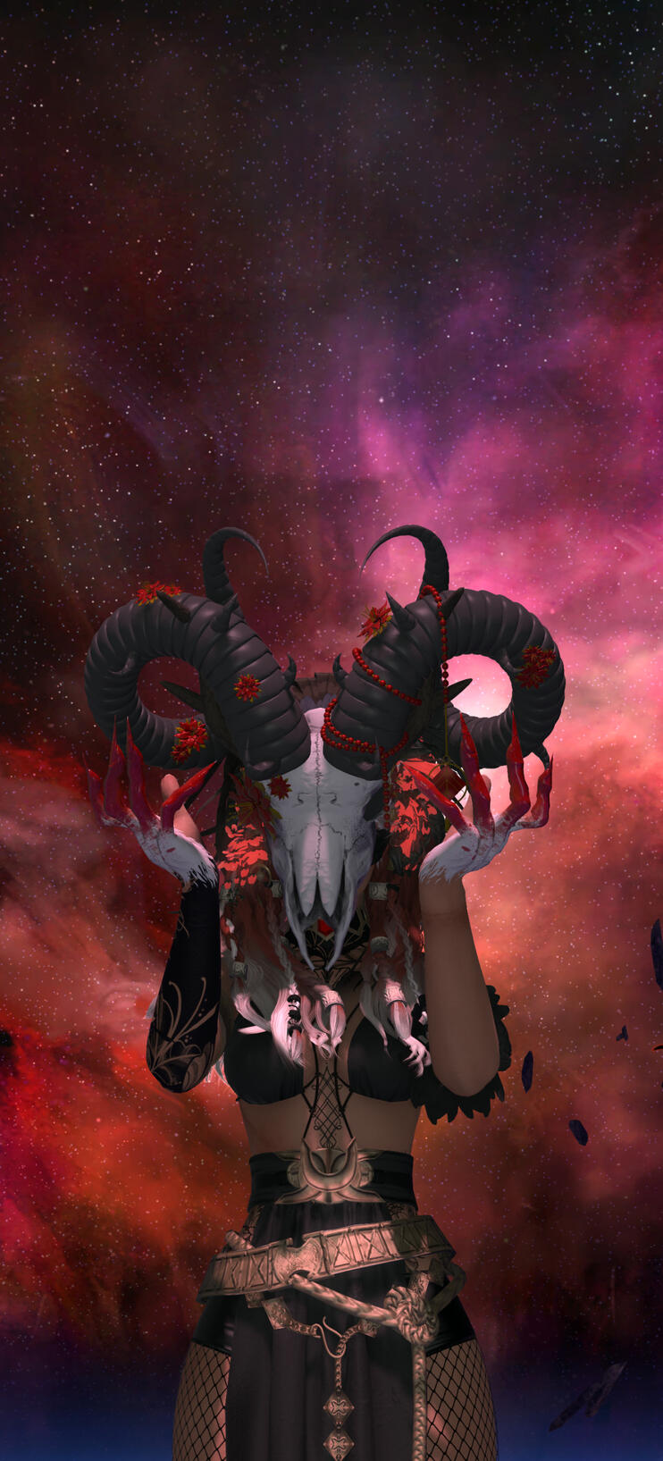 Visual Changes:Hair turns rust red, flowing like a curtain of old blood.She dons a cracked animal skull as a mask—never removed in this state.